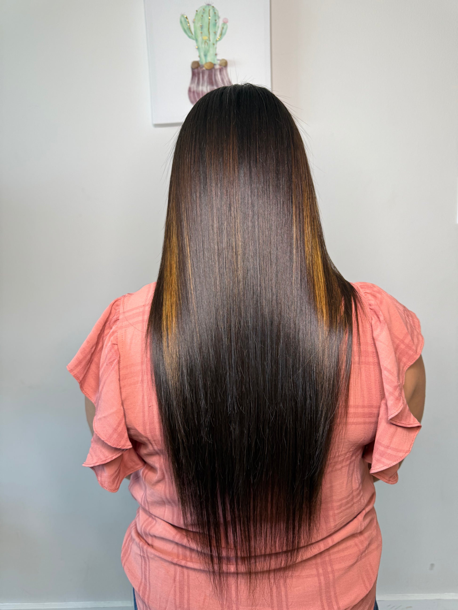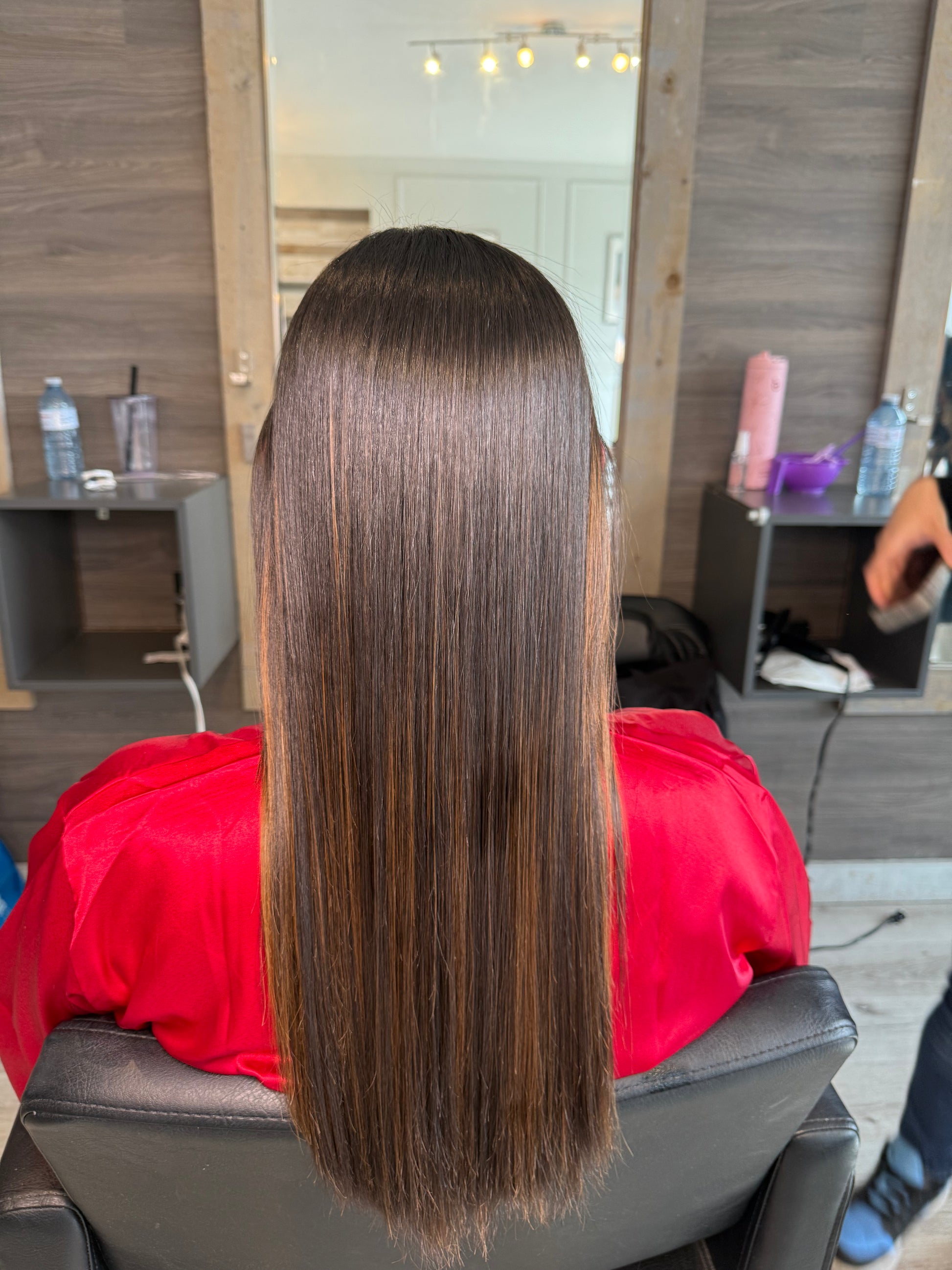 What benefits does it offer? - Deep repair of damage caused by external aggressors or chemical treatments. - Frizz control and increased manageability. - Enhanced shine and softness. - Restoration of elasticity and overall hair health. - Long-lasting results with proper care, and the best part is that it can be done once a month.